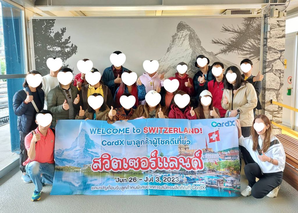 บิลเลี่ยน เดสติเนชั่น ขอขอบพระคุณ บริษัท คาร์ด เอกซ์ จำกัด ที่ไว้วางใจให้ทางเราได้ดูแลการจัดทริปท่องเที่ยวระดับพรีเมี่ยมให้กับผู้โชคดีค่ะ ซึ่งครั้งนี้ลูกค้าเลือกท่องเที่ยว ณ ประเทศสวิตเซอร์แลนด์ ช่วงวันที่ 26-3 กรกฏาคม 2566 นำทุกท่านเดินทางท่องเที่ยวทั่ประเทศสวิตเซอร์แลนด์ แวะแลนด์มาร์กสำคัญ ชมวิวทิวทัศน์สุดอลังกาลและอิ่มอร่อยไปกับอาหาร เต็มไปด้วยความสนุกสนาน รอยยิ้ม และความประทับใจ ทางทีมงานต้องขอบพระคุณจริงๆค่ะ